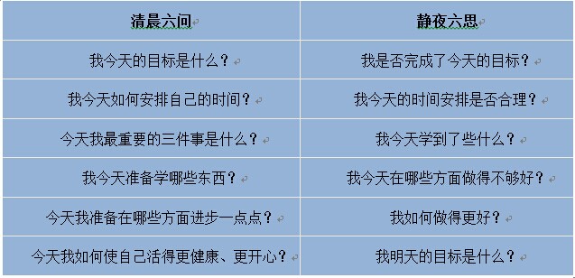 有公司管理人員專門設(shè)計了一個“員工每天自我思考六問六思”表,在很多企業(yè)運行,并且反映效果不錯。