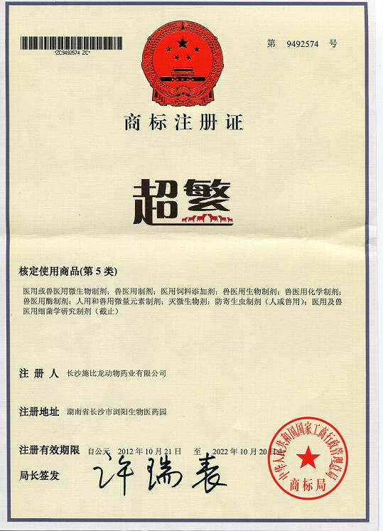 超繁商標(biāo)注冊證