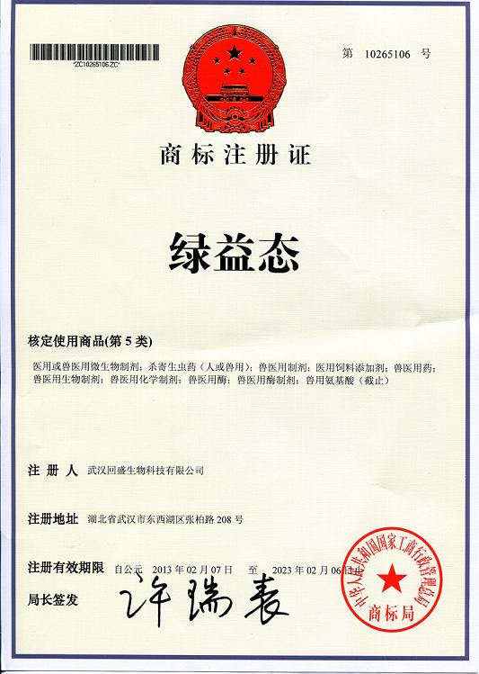綠益態(tài)商標注冊證